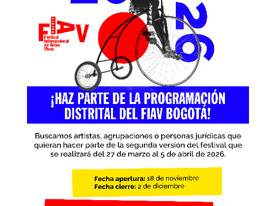 El Festival Internacional de Artes Vivas de Bogotá – FIAV 2026 abrió oficialmente su convocatoria para que artistas, agrupaciones y organizaciones culturales de la ciudad postulen ...